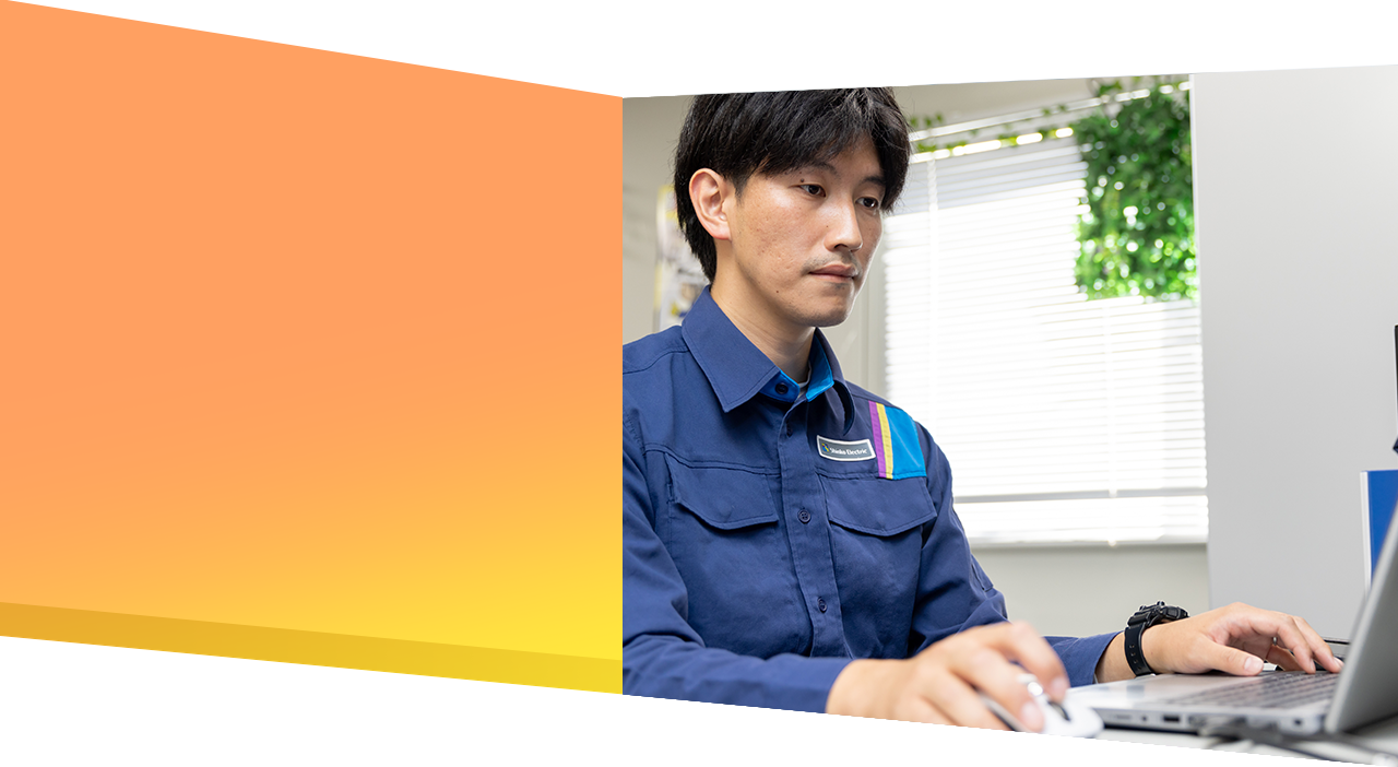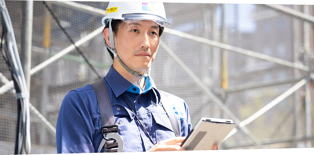 私は現在、工事部の主任として、主に施工要領書の作成、CADを用いた図面作成、施工管理士としての現場業務を行っています。中でも仕事の大半を占めるのが施工要領書の作成です。「当社はこの現場でこういうルールに則り、こうした業務を行います」という書類を40枚程度作りこむのですが、工事の基準となる重要書類なので、いつも細心の注意を払っています。