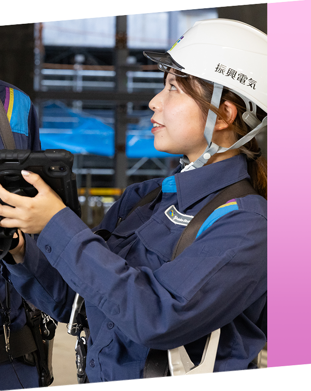 振興電気は、職場環境が良く、何より人間関係が良好なところが魅力です。最初はわからないことだらけでしたが、何でも気軽に質問できる人たちばかりで日頃から助けられています。上司や先輩もそうですし、協力会社の作業員の方なども気さくで優しく、聞けばきちんと教えてくれます。